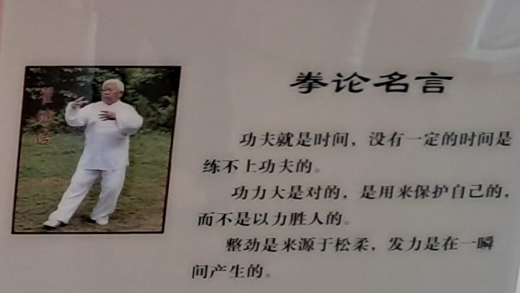 „Gongfu (umiejętności) opierają się na czasie; nie da się ich rozwinąć bez poświęcenia odpowiedniej ilości czasu. Posiadanie wielkiej siły jest dobre, ale służy obronie, a nie do wygrywaniu przez użycie siły. Siła całego ciała pochodzi z rozluźnienia i miękkości, a emisja siły następuje w mgnieniu oka”.